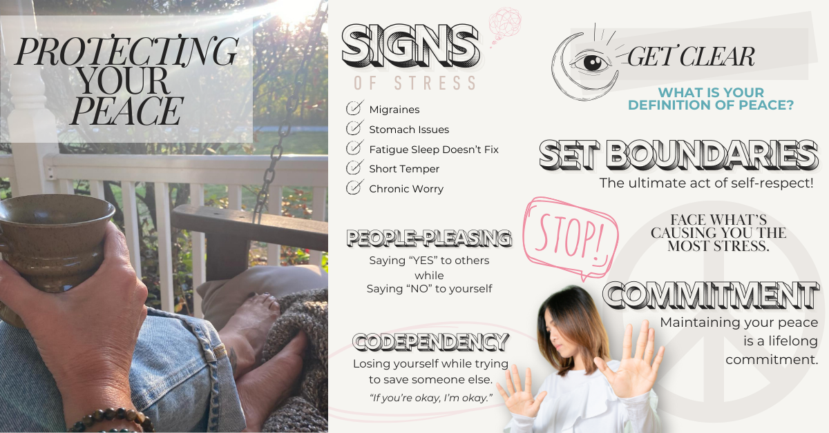 What does peace feel like to you? Is it waking up without dread? Is it having space to breathe without feeling guilty for resting? Is it setting boundaries without fearing rejection? The first step to reclaiming your peace is defining what it actually looks like for you.
